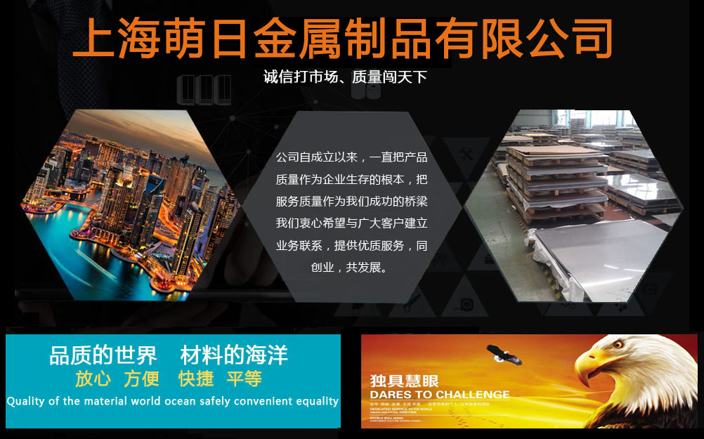 上海萌日金屬制品有限公司一直致力于為國內(nèi)各大中型國有企業(yè),外資企業(yè),民營獨資企業(yè),模具制造企業(yè),機械加工企業(yè),石油化工企業(yè)及器械企業(yè)等供應(yīng)各種特種鋼材,進口/國產(chǎn)鋁合金,不銹鋼,合金結(jié)構(gòu)鋼,42CrMo鋼板,35CrMo鋼板,40Cr鋼板,合金圓鋼,中厚板,鍛件,法蘭,鋼帶,軸承鋼,易切鋼,不銹圓鋼,合金管,矩形鋁管,無縫鋁管,鋁管,工業(yè)鋁管進口及國產(chǎn)方胚/鋼錠/鋁錠,應(yīng)用于機械,機電,造船,工程,煤礦,紡織,電力,鍋爐, 汽車工業(yè)等各個領(lǐng)域。我公司可以根據(jù)客戶對特殊材料的要求進行材料和產(chǎn)品的定制,可按ISO,ANSI,JIS,DIN,GB等標(biāo)準(zhǔn)定制,我們將本著"誠實守信,合作共贏,長期合作"的理念與新老客戶一起進步發(fā)展。